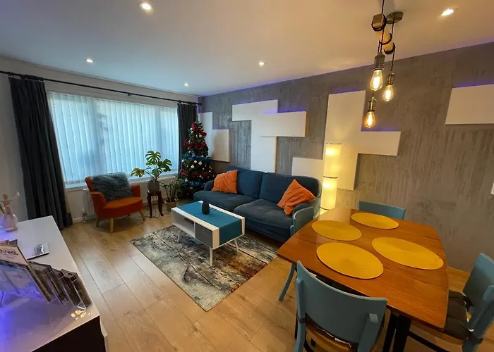 Das Blarmore Apartment Inverness verfügt über zwei geschmackvoll eingerichtete Schlafzimmer, die für Entspannung und Erholung sorgen. Ein großzügiger Wohnbereich mit einem Flat-Screen-TV sowie eine gut ausgestattete Küche mit modernen Geräten, einschliesslich eines Geschirrspülers und einer Mikrowelle, garantiert höchsten Komfort.